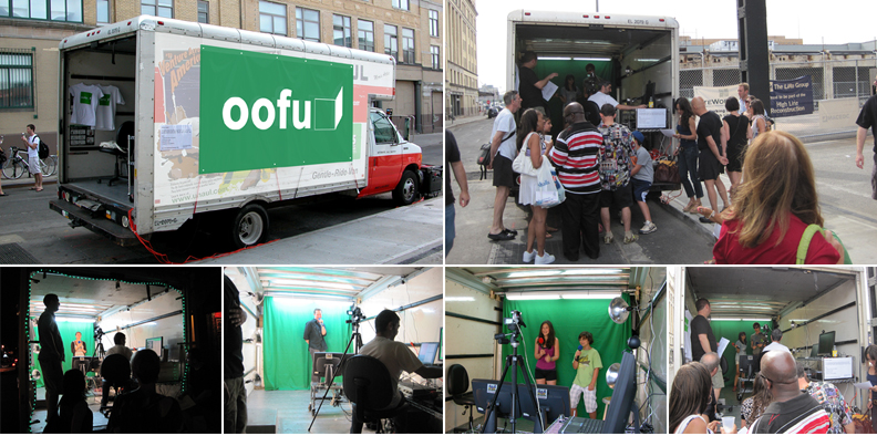 As part of the ‘09 Mobile Play Sessions, oofu is giving anyone (with talent or nerve) the opportunity to record their own real time green screen music video. What’s that? It’s you singing karaoke style to one of your favorite tunes (see available playlist of songs here) mashed up with a real time stream of images and video backgrounds. It’s a killer music vdo, it’s your killer music vdo. You're the shinning star, you're the superstar.